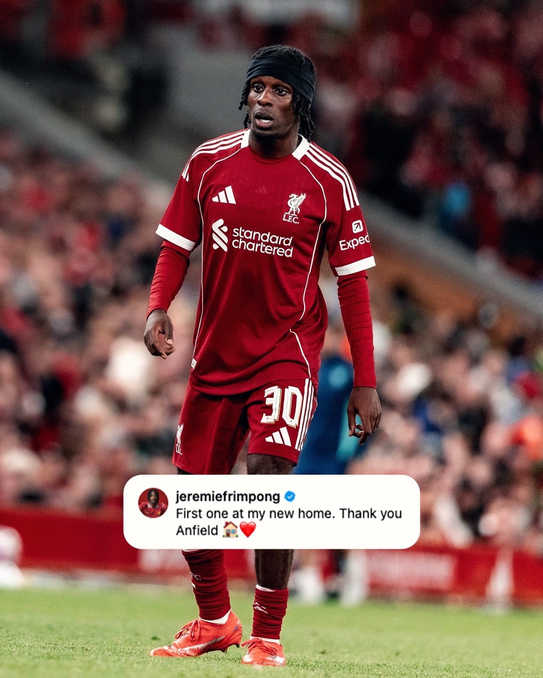 Jeremie Frimpong after his Anfield Debut. Source: X